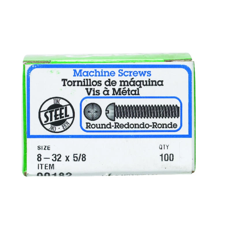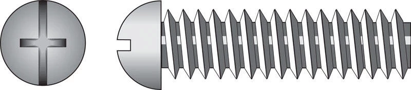 Zinc, round-head, combo-drive machine screws have a machine-cut thread throughout the length of their shank. Fasten with either a Phillips or slot screwdriver to reduce risk of over-tightening and protect the screw and fastened material. If nuts are needed, use with nuts of the same finish and threading for proper fit. Use for any indoor or outdoor projects. #8-32 coarse thread x 5/8″ length. *
