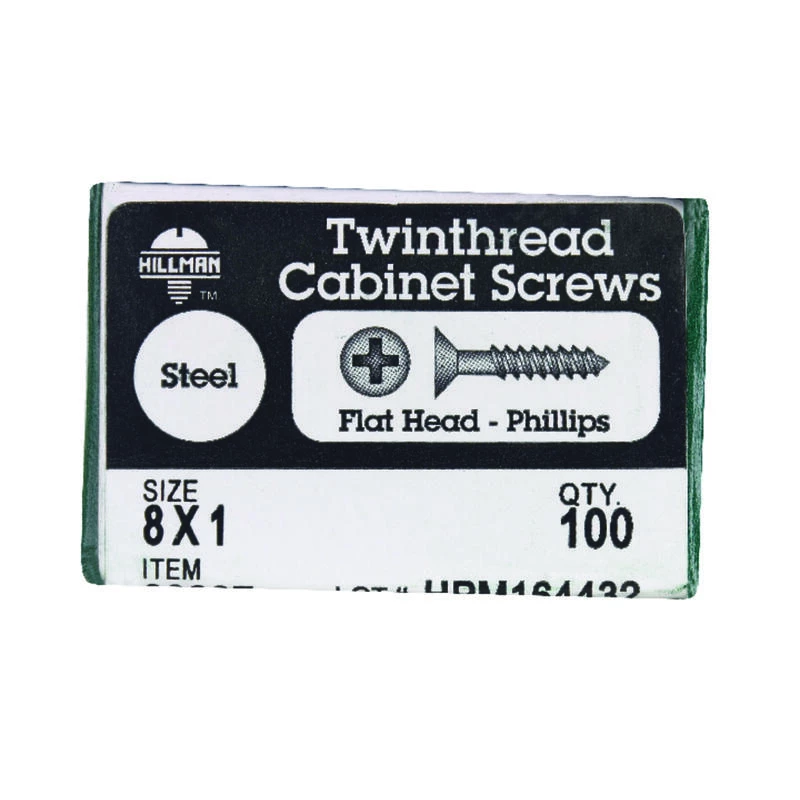 Cabinet screws with flat heads are chosen for their lack of head height, making them ideal to use where a protruding head is unacceptable. These screws can be used for virtually any interior wood to wood fastening job. Common applications feature pull down rings that pull the cabinet right to the wall’s surface. You’ll find that our cabinet screws give a clean finished appearance, with a black phosphate finish for long-lasting use. Twinfast screws have two threads that offer quicker installation, twice as fast as a screw with the same thread pitch.