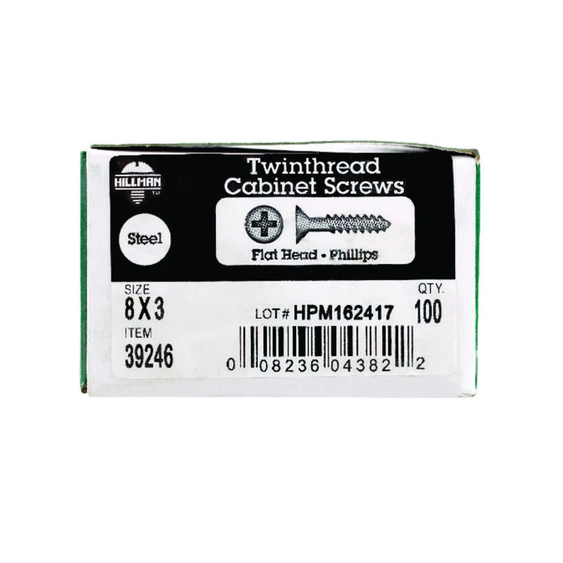 Cabinet screws with flat heads are chosen for their lack of head height, making them ideal to use where a protruding head is unacceptable. These screws can be used for virtually any interior wood to wood fastening job. Common applications feature pull down rings that pull the cabinet right to the wall’s surface. You’ll find that our cabinet screws give a clean finished appearance, with a black phosphate finish for long-lasting use. Twinfast screws have two threads that offer quicker installation, twice as fast as a screw with the same thread pitch.
