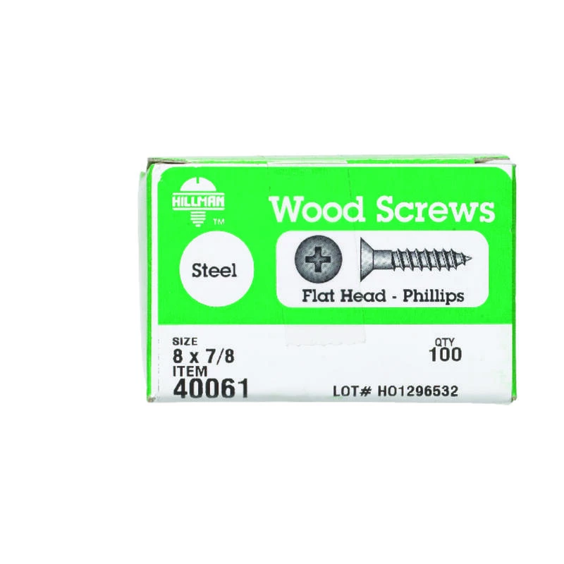 Hillman No. 8 X 7/8 in. L Phillips Zinc-Plated Wood Screws 100 pk