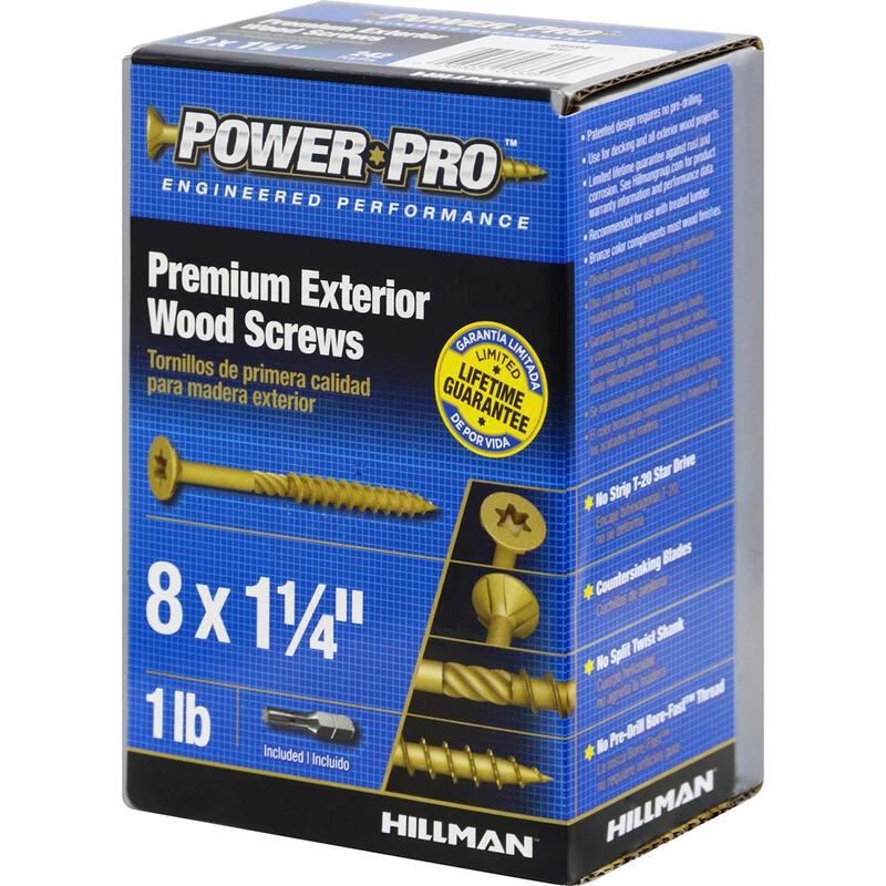 Power Pro premium wood screws are designed to provide simple solutions for your interior wood projects. These screws are made of zinc and yellow dichromate, with a no-strip star drive, countersinking blades and no split twist shank for a more controlled drive. No pre-drill is required. Packaging also stacks neatly for easy storage and organization.