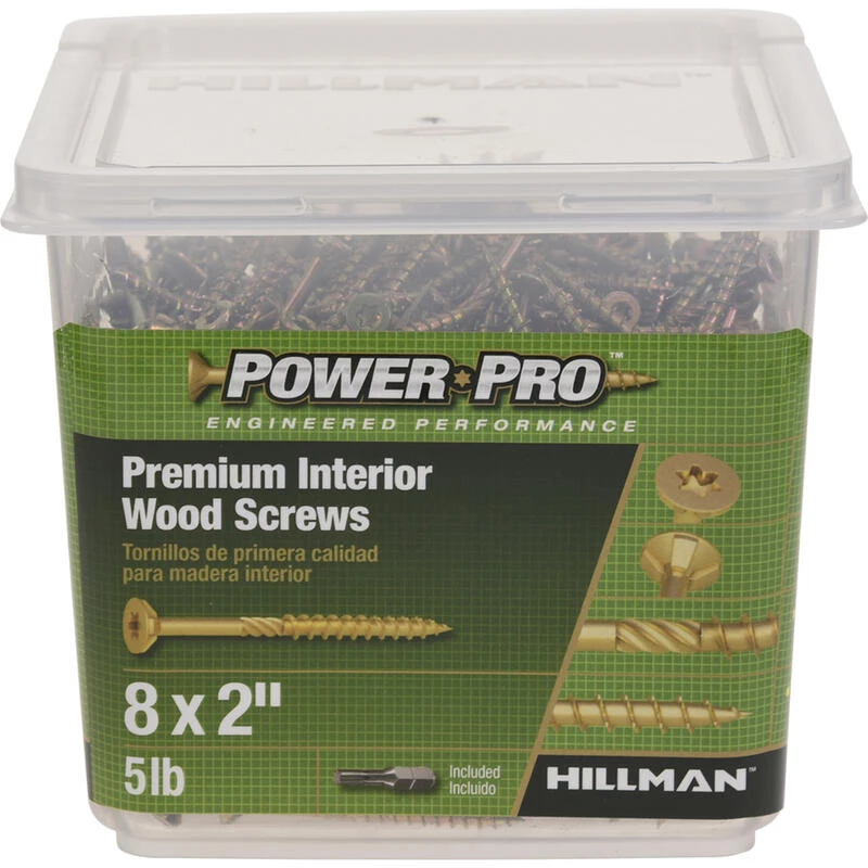 Power Pro premium interior wood screws are designed for wood construction and DIY projects. Engineered performance provides simple solutions for your project. These screws are made of yellow zinc and feature a no-strip star drive, countersinking blades, n