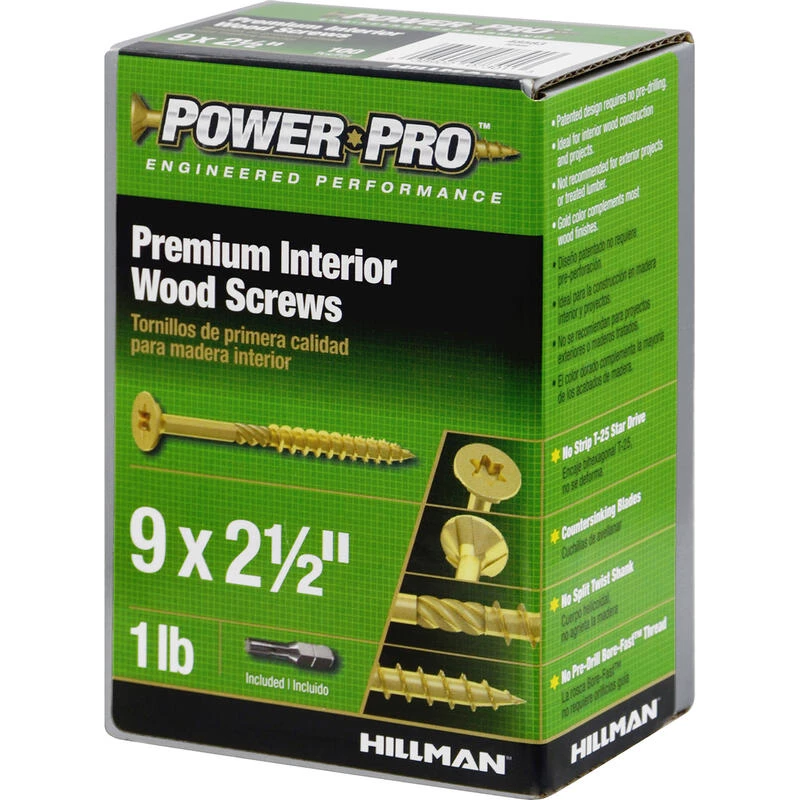 Hillman Power Pro No. 9 X 2-1/2 in. L Star Yellow Zinc Wood Screws 1 lb 100 pk