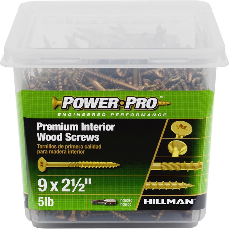 Power Pro premium interior wood screws are designed for wood construction and DIY projects. Engineered performance provides simple solutions for your project. These screws are made of yellow zinc and feature a no-strip star drive, countersinking blades, no-split twist shank and no pre-drill, Bore-Fast thread. Packaging stacks neatly for easy storage and organization for hassle-free post-purchase use.
