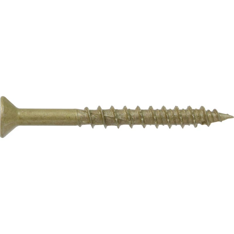 Engineered for optimum performance in multiple materials Power Pro One screws are the One screw you’ll ever need. Developed to outperform and replace standard wood sheet metal and concrete/masonry screws the One Screw program simplifies your tool box by using a single innovative engineered screw design to satisfy projects that fasten into wood metal concrete drywall and plastic. The bronze epoxy coating is recommended for exterior projects and treated lumber (Not recommended for marine applications or projects within 5 miles of coastal waters). The flat head design and star drive provide easy and clean countersinking into wood. Manufactured with spiral flutes serrated hi-lo threads and a 3-sided pyramid point no pre-drilling is required in wood drywall plastic or metal up to 20 gauge thick. Concrete and masonry applications require a pre-drilled a hole see product packaging for pre-drilling instructions.